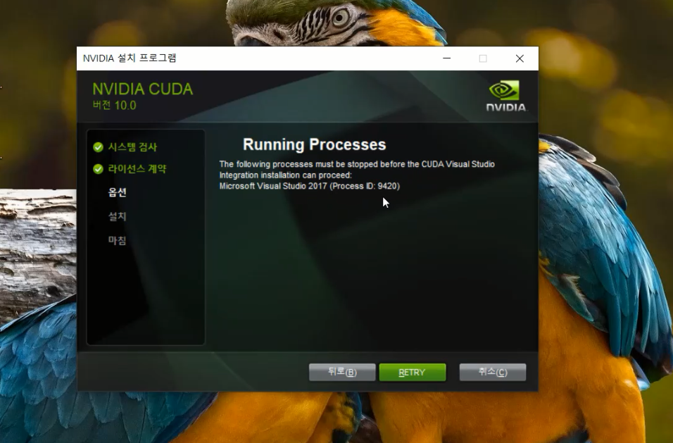설치를 제대로 해주기 위해서는 해당 프로세스를 종료해주시면 됩니다.