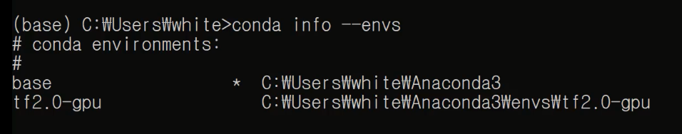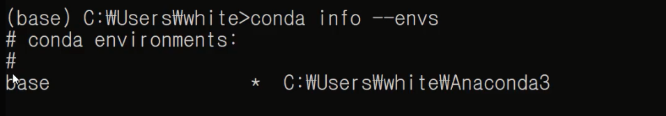 conda info --envs 명령어로 확인해보세요.