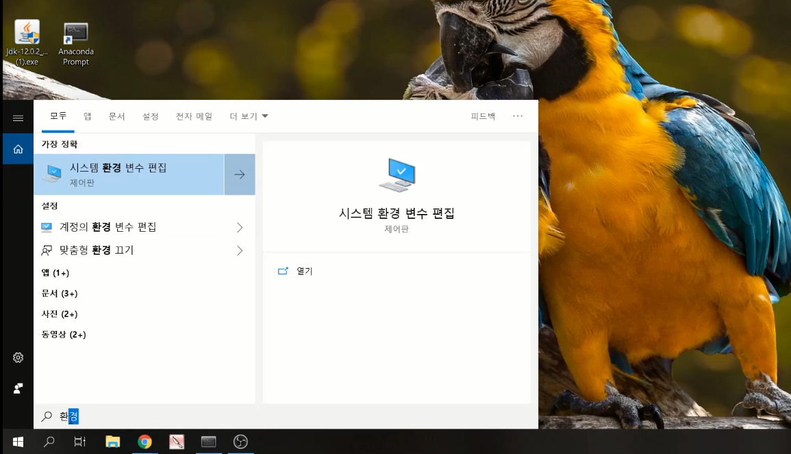 검색창을 열고 '시스템 환경 변수 편집'에 들어갑니다.