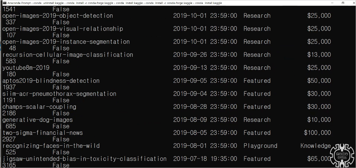오늘은 아나콘다 프롬프트창에서 Kaggle API 설치부터