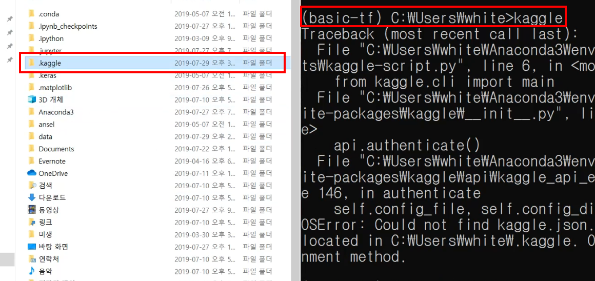 이 .kaggle이라는 폴더는 사용자가 억지로 만들 수 있는 것이 아니고