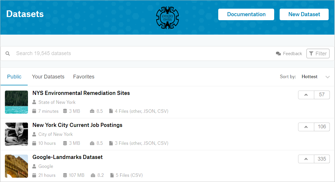 kaggle datasets 텝에는 실습에 사용할 수 있는 좋은 데이터들이 많이 있습니다.