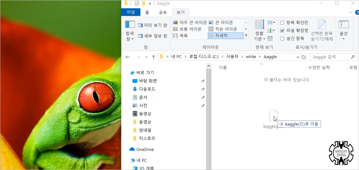 이제 아까 받아두었던 kaggle.json 파일을 .kaggle 안에 옮겨줍니다.