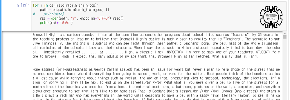 이런 식으로 train/pos 경로의 모든 텍스트 파일들을