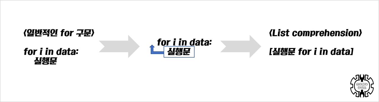 list comprehension은 간단한 코딩을 위해 실행문을 for문 앞으로 가져오는 것입니다.