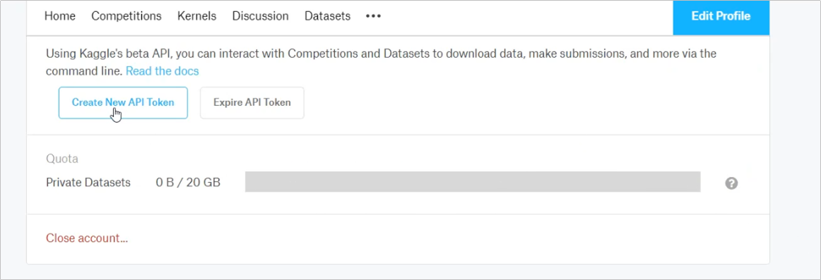 이렇게 하여 kaggle 사용자 토큰 설정이 끝났습니다.