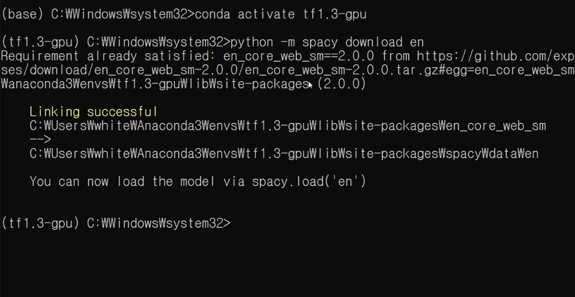 네 이렇게 오늘은 Anaconda python에서 spacy 라이브러리 설치와
