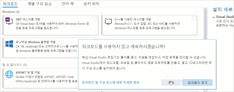 2가지 체크박스에 모두 체크를 해주고 진행합니다.