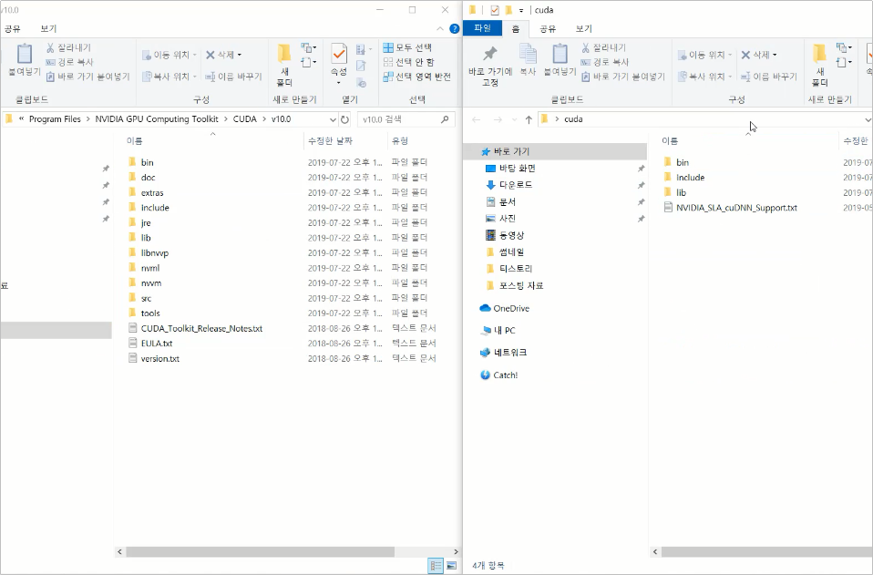 ① C드라이브 → Program Files →NVIDIA GPU Computing Toolkit → CUDA → v10.0