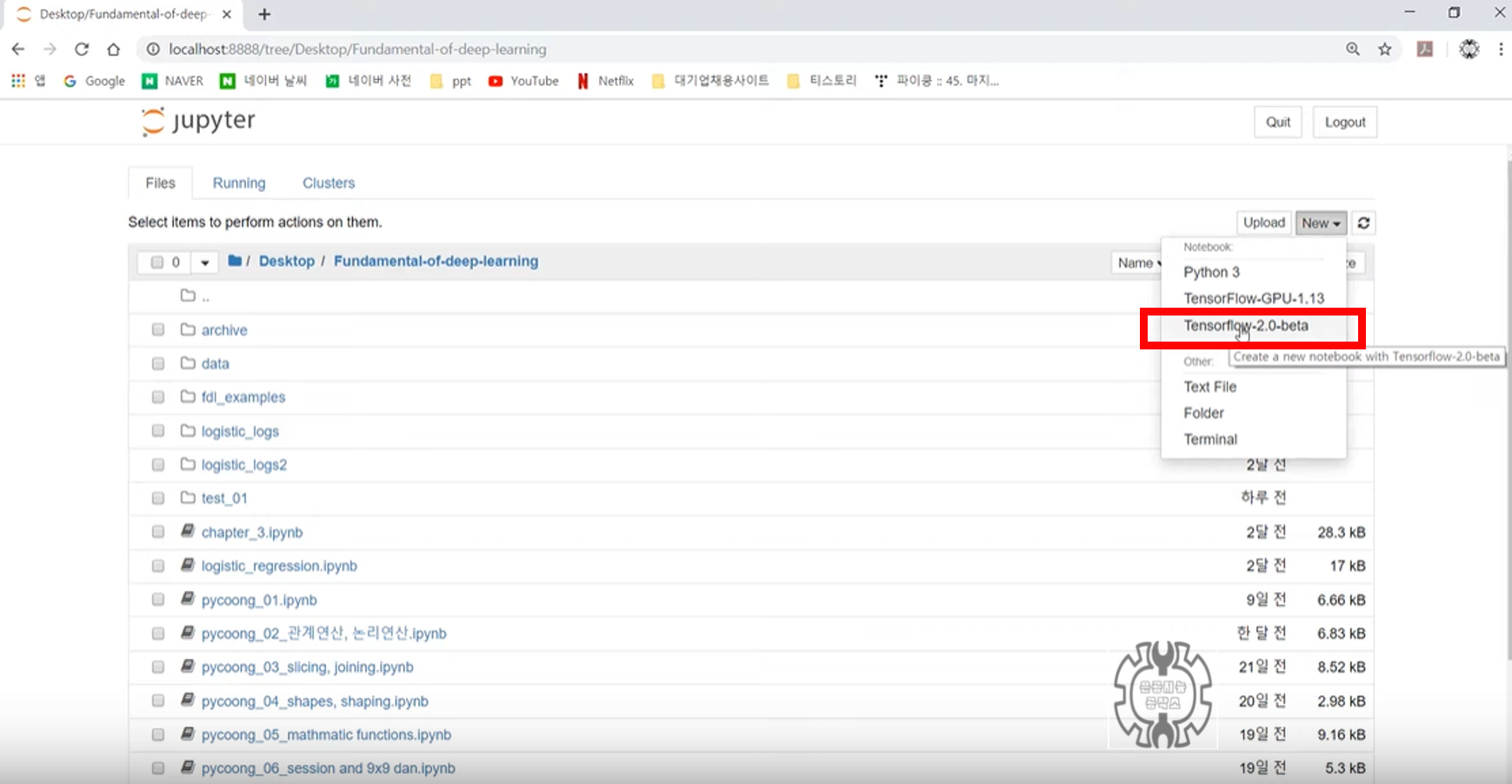 이번에 만들어준 'Tensorflow-2.0-beta' 커널을 선택하셔야 한다는 것입니다.