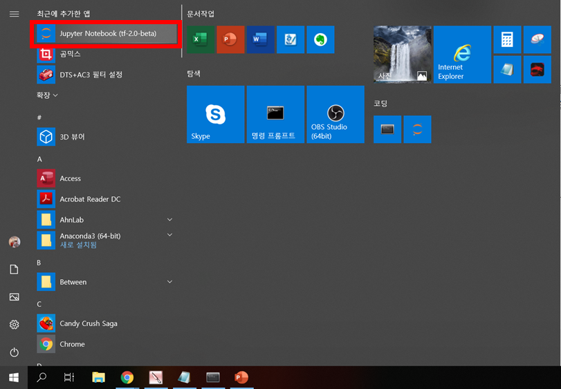 성공적으로 tensorflow 2.0을 설치를 했지만, 매번 콘다 prompt에 들어가서