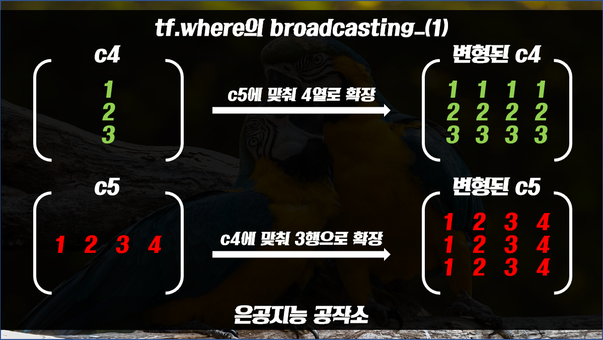 where 함수에 broadcasting 기능이 추가가 되었습니다.