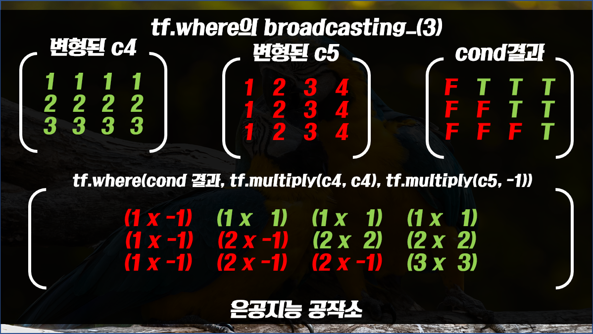 이전 버전에서도 tf.where 함수가 있지만 broadcasting은 지원하지 않습니다.
